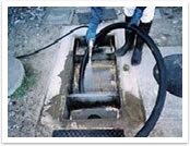 箱バンタイプの清掃車には高圧洗浄器が付いていて、ついでに配水管を洗浄をいたします。また、来客を気にせずに作業出来ます。